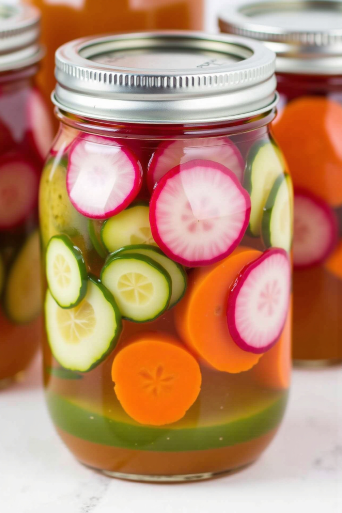 The secret to the perfect quick pickles is a simple brine: white vinegar, water, sugar, and salt, balanced for tang and subtle sweetness. Add aromatics like garlic, peppercorns, or fresh herbs to customize the flavor to your liking. Pour the hot brine over your sliced radishes and veggies, then chill for a few hours. You’ll have crisp, tangy pickles without the lengthy process and waiting of traditional canning.