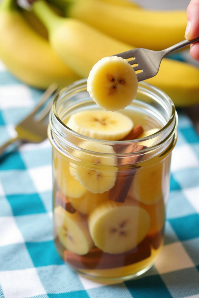 3. Pour the brine over the bananas, fully submerging them. Tuck in the optional cinnamon stick or cloves for extra flavor if desired.